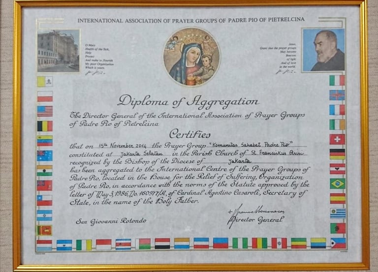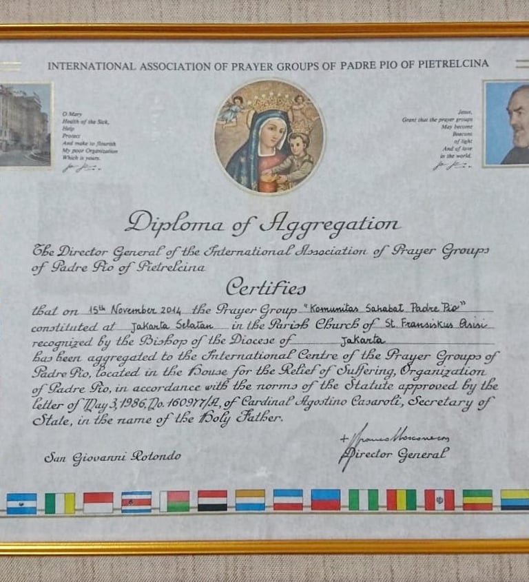 Bulan Oktober 2018, Padre Luciano Lotti OFMCap., Sekretaris Jenderal Kelompok Doa Padre Pio dari Biara Kapusin San Giovanni Rotondo, didampingi Padre Nicola Monopoli OFMCap., berkenan datang ke Indonesia untuk menjawab kerinduan umat akan sapaan dan sentuhan yang mendekatkan umat kepada sosok Santo Pio yang bersahaja yang biasa dikenal dengan panggilan dan sebutan Padre Pio.