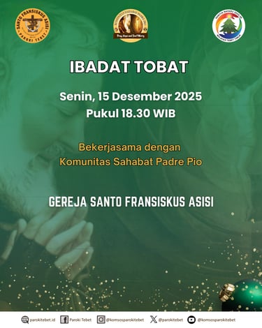 Para Sahabat Padre Pio yang terkasih, Gereja Santo Fransiskus Asisi mengajak seluruh umat beriman untuk membuka diri pada karya belas kasih Allah melalui Ibadat Tobat dan Pengakuan Dosa.