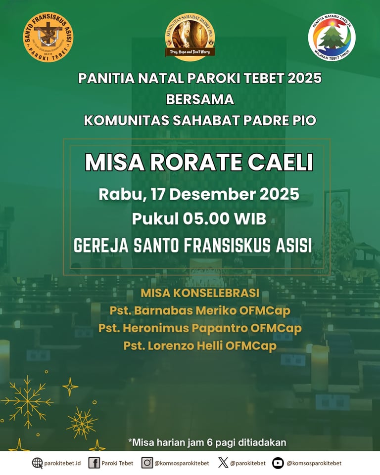 Para Sahabat Padre Pio yang terkasih, Misa Rorate Caeli adalah misa Adven yang dirayakan dalam keheningan sebelum fajar, saat dunia masih diselimuti gelap.